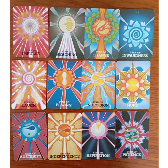 This Fortune Telling method is more like an exciting game – to be played by one or more – with 96 double-sided cards and a unique Sky Spread flexible game board. The variety in the symbolic cards assures you a different variation every time even if you choose the same theme or questions on which to focus. The perceptions gained from the card’s pictures, words and symbols will give added insight into your decision making and develop your intuition, as well as creating fascinatingplay for yourself and for other players.